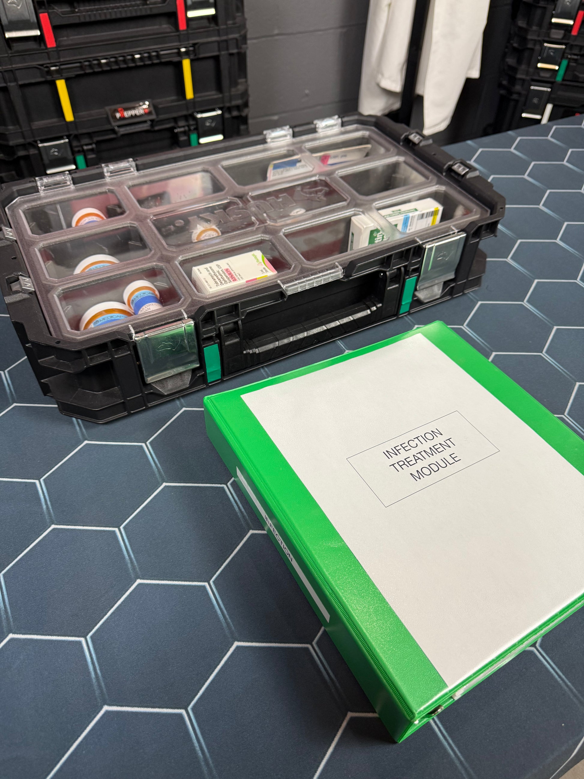 This option is the standalone treatment module from the STACK Pro tower above, and provides the buyer with all components of the Injury Treatment Module, including medications and supplies, as well as the full 220 page binder with the corresponding medical education and instruction. In addition, buyers will receive the “Skillsets” binder that includes all the procedures needed to manage these injuries.